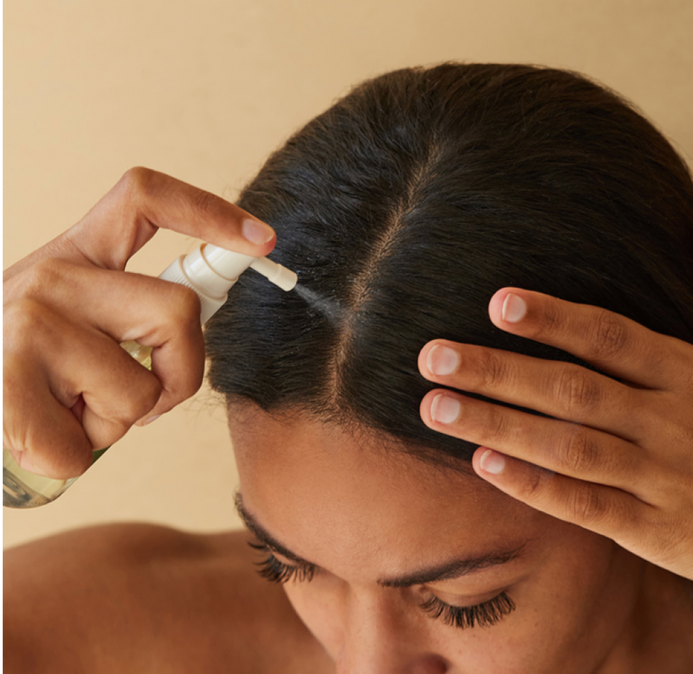 رش بإحكام على فروة الرأس بحيث يغطي جميع الأجزاء. رش بالتساوي في جميع أنحاء فروة الرأس ودلك بلطف بأطراف أصابعك أو فرشاة فروة الرأس الخشبية.
