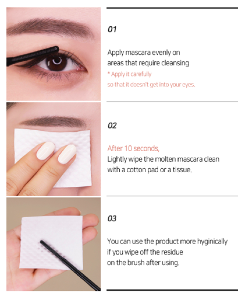 - انتظري حوالي 10 ثوانٍ للسماح للمنتج بإذابة الماسكارا.