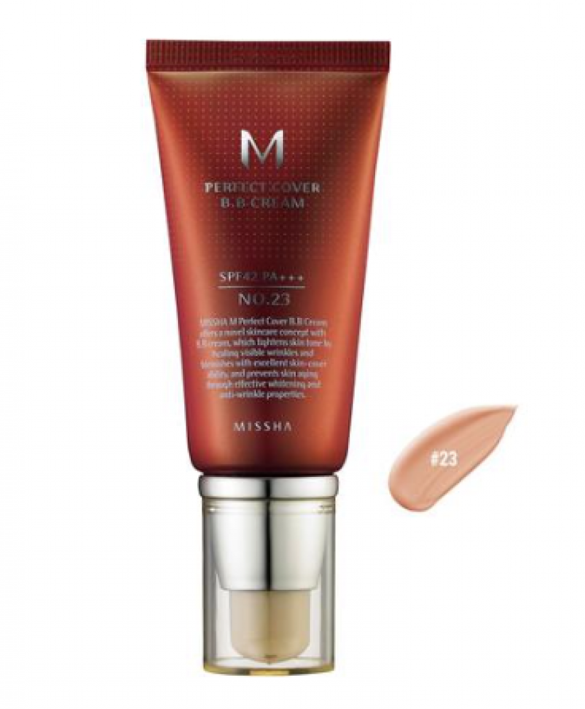 يعبر كريم Missha M Perfect Cover BB Cream عن بشرة خالية من العيوب ومشعة من خلال تغطية عيوب البشرة بتغطيتها الممتازة. رقم 23 البيج الطبيعي مع وظائف مكافحة التجاعيد ، التبييض والحماية من الأشعة فوق البنفسجية.فوائد:كريم BB متعدد الوظائف يخفي ويحمي ويبيض وينعم الخطوط والتجاعيد مع كل استخدام لتقليل وترشيد روتين المكياج بشكل ملحوظ.يوفر تغطية متوسطة الى جيدةيوفر SPF 42 حماية قوية من المعتدين على البيئة ، ويمنع شيخوخة الجلد المبكرة عن طريق درء أشعة UVA و UVB.كيف تستعمل:بعد العناية بالبشرة الأساسية ، ضع كمية صغيرة من المنتج على اليدين وانتشر بالتساوي على سطح الوجه.استخدمه بمفرده أو مع طبقات تحت الأساس المفضل لديك لمزيد من التغطية.