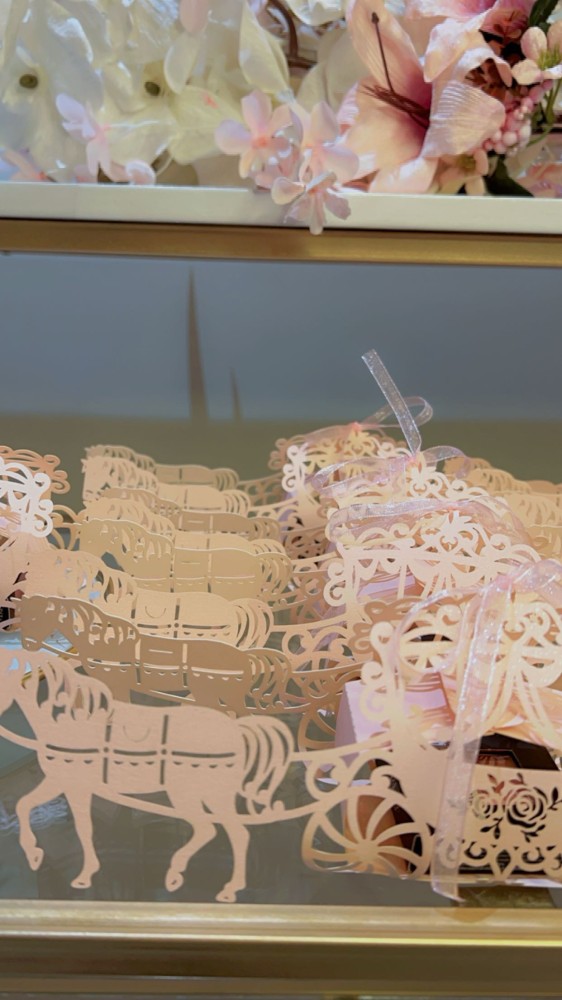 تصميم كلاسيك عربة وحصان بلون مشمشمي