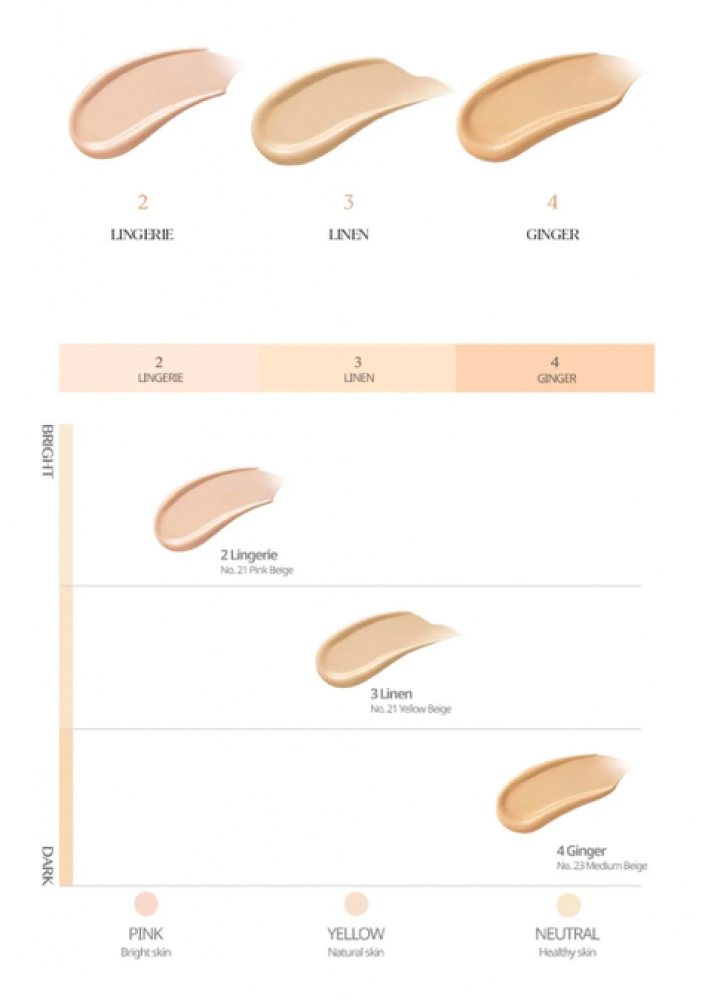 - درجة اللون #02 Lingerie: هذه الدرجة هي بيج وردي (Pink beige)، وهي مناسبة للبشرة الفاتحة ذات النغمات الوردية.