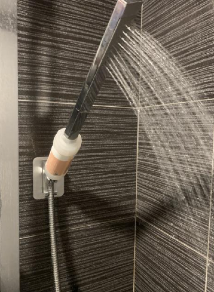 قم بتثبيته بزاوية 45 درجة ، من الأفضل تثبيته بالقرب من رأس الدش.